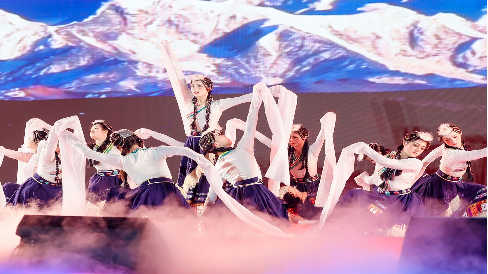 And the original dancing performance of ‘Rhythm in Clouds’ co-starred by faculty SUN Hongjing and her students in the Troupe, which was conceptualized,—resembling a landscape of people-and-nature harmony—, styled in a sense of Chinese ink painting to shape a kind of national artistic reality through many of iconic elements of the folk dance.