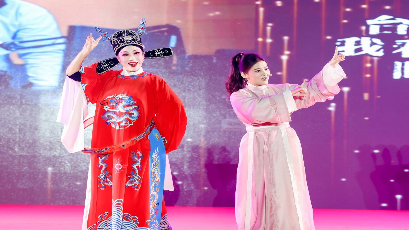 After a sweet song of ‘Welcome to AXHU Campus’ caroled the crowd, came the Anhui Huangmei opera ‘Nv-Fu-Ma,’ performed by faculty members: School of Culture and Communication XING Yu and the School of Big Data and Artificial Intelligence ZHANG Yaqi, feasting a profound glamour to the audiences to be adorned with kind of music experience exceptionally throughout their beautiful tunes and melodious flavors, appealing of all time.
