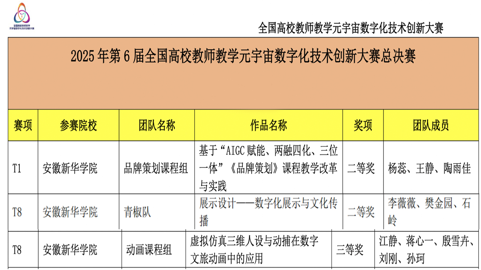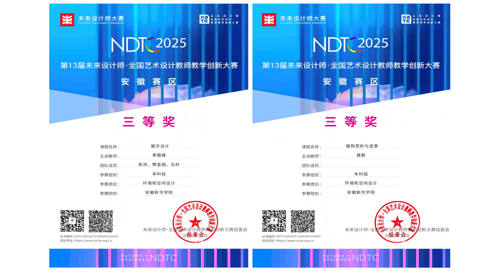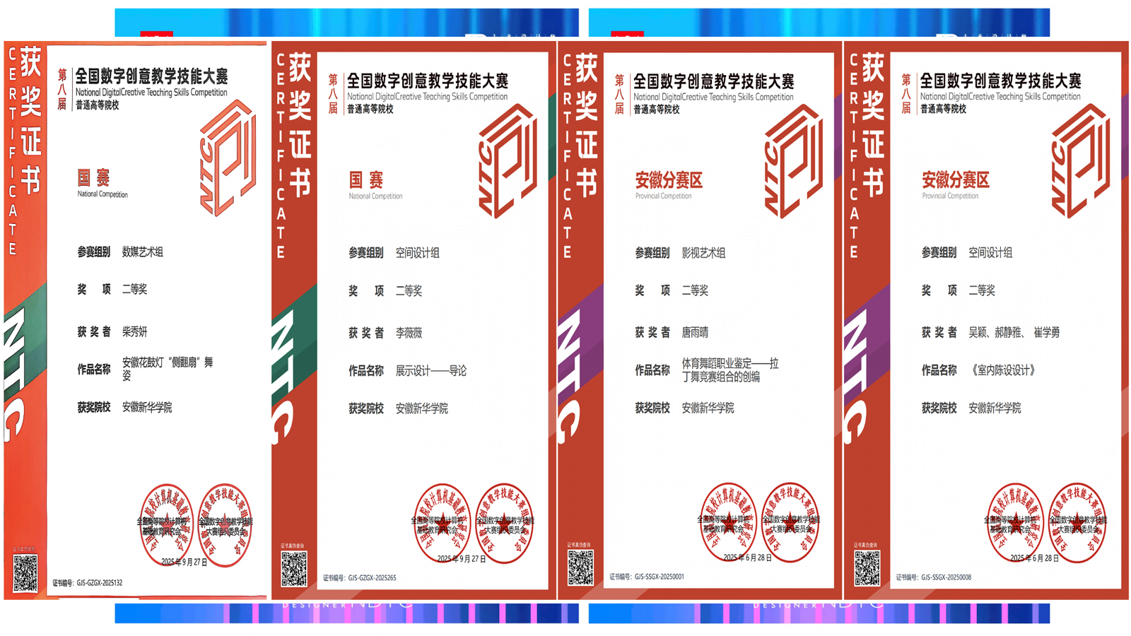 During the 8th National Competition for Digital Creative Teaching Skills (NCDCTS) in Sept, 2025, the China’s Top Disciplinary Competition series in the field of digital creativity and digital art education, the faculty delegates earned two national Second-Prize as well as two provincial Second-Prize by means of their content courses, methods, and tech toolkit, which aims to transform the abstract theoretical knowledge into some vivid classroom activities being on the digital era’s trend.