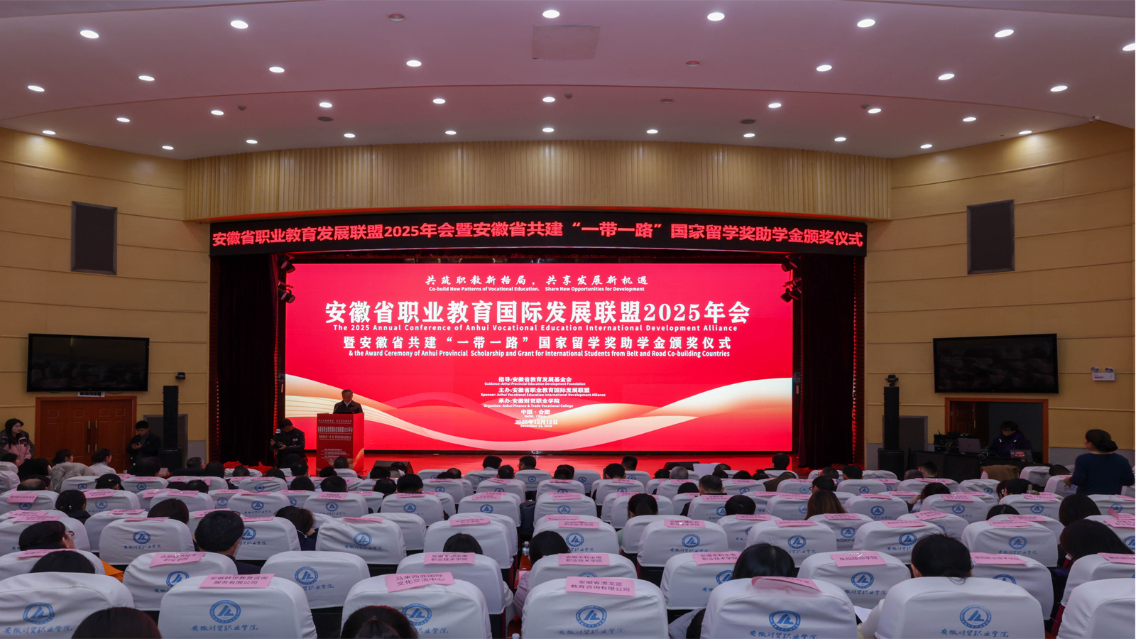 Recently, the 2025 Annual Conference of Anhui Vocational Education International Development Alliance & the Award Ceremony of Anhui Provincial Scholarship and Grant for International Students from Belt and Road Co-building Countries was scheduled and hosted by Anhui Finance & Trade Vocational College, and AXHU vice president HE Xingjia, the School of International Education dean Fan Dongsheng, and 10 recipients from the current AXHU Intl. Students, who comprehensively performed well in the year’s academic career, local cultural adaptations, and positive engagements in Chinese Belt and Road initiatives, attended the grand event.